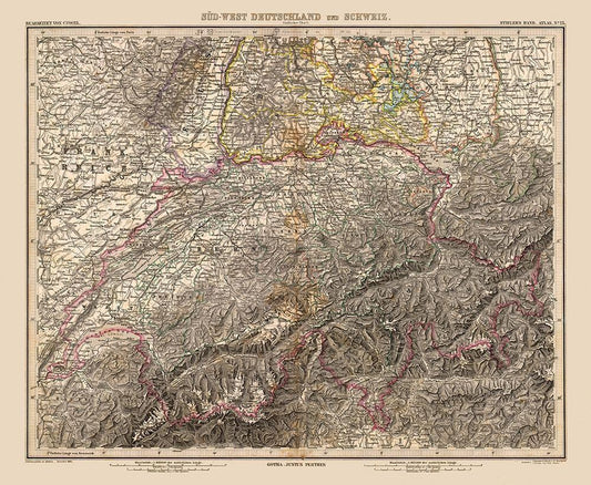 Southwest Germany Switzerland - Stieler 1885 White Modern Wood Framed Art Print with Double Matting by Stieler