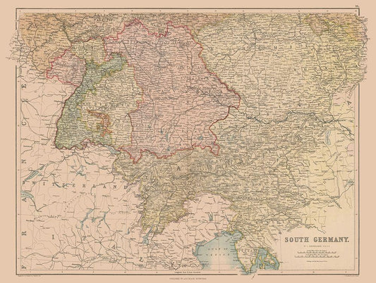 Western Germany - Bartholomew 1892 White Modern Wood Framed Art Print with Double Matting by Bartholomew