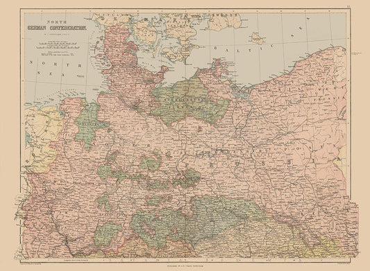 Europe Northern Germany - Stieler 1852 White Modern Wood Framed Art Print with Double Matting by Stieler