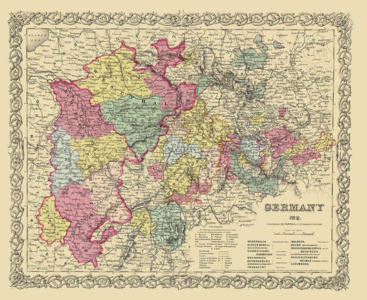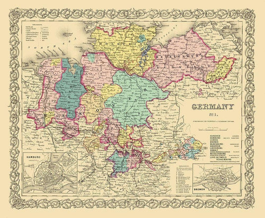Germany - Johnson 1860 White Modern Wood Framed Art Print with Double Matting by Johnson