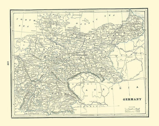 German Empire 2 Germany - Letts 1883 White Modern Wood Framed Art Print with Double Matting by Letts
