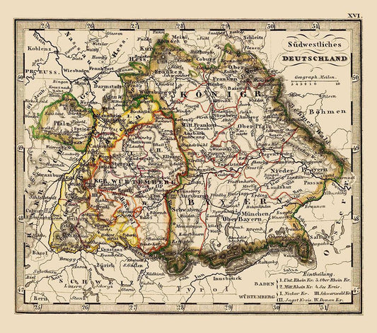 Southwest Germany - Stieler 1852 White Modern Wood Framed Art Print with Double Matting by Stieler