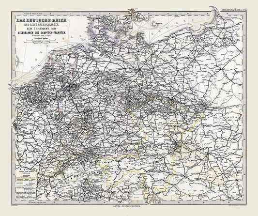 Overview Germany - Stieler 1885 White Modern Wood Framed Art Print with Double Matting by Stieler