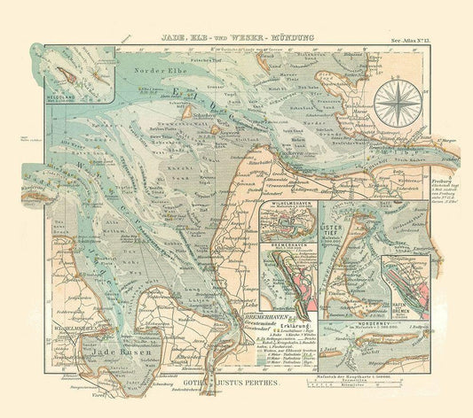 Jade Bight Elbe Weser Germany - Perthes 1914 White Modern Wood Framed Art Print with Double Matting by Perthes