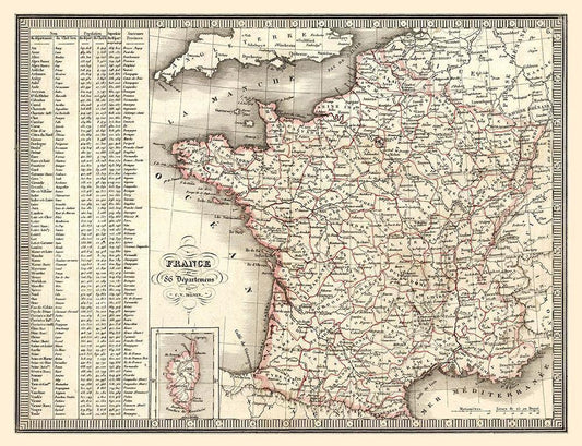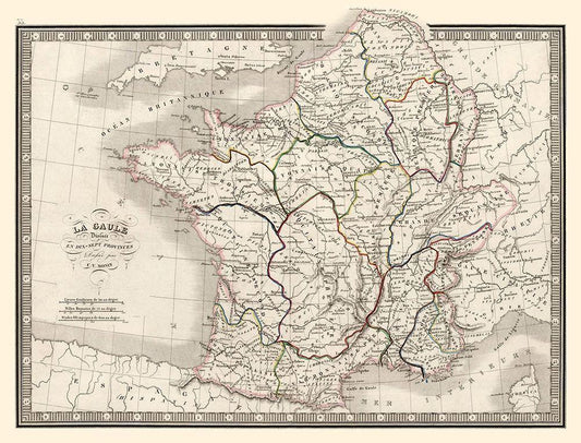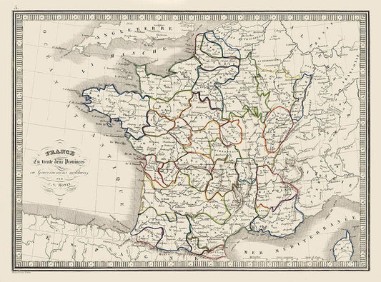 Ancient France Ten Provinces - Monin 1839 White Modern Wood Framed Art Print with Double Matting by Monin
