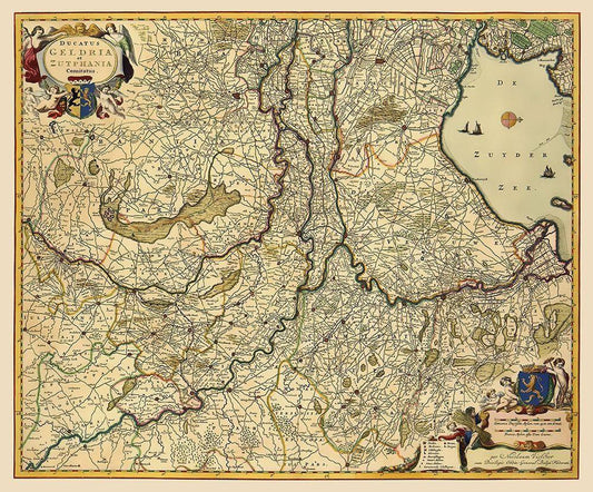 Gelderland Zutphen Netherlands - Visscher 1682 White Modern Wood Framed Art Print with Double Matting by Visscher