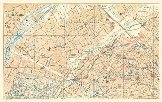 Courbevoie Clichy Paris France - Baedeker 1911 White Modern Wood Framed Art Print with Double Matting by Baedeker