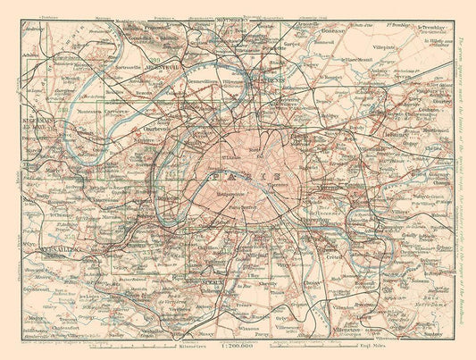 Suburbs Paris France - Baedeker 1911 White Modern Wood Framed Art Print with Double Matting by Baedeker