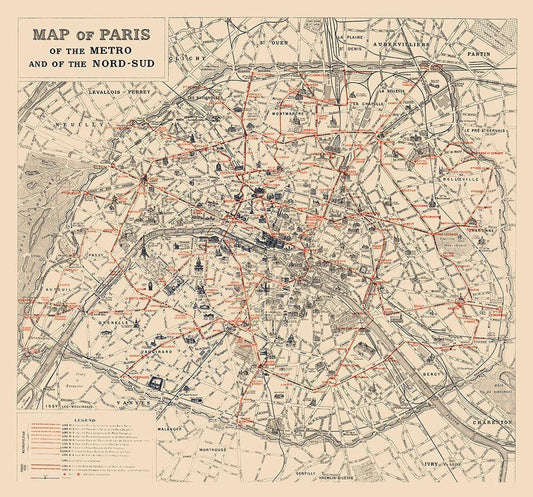 Metro Nord Sud Paris France - 1923 White Modern Wood Framed Art Print with Double Matting by Unknown