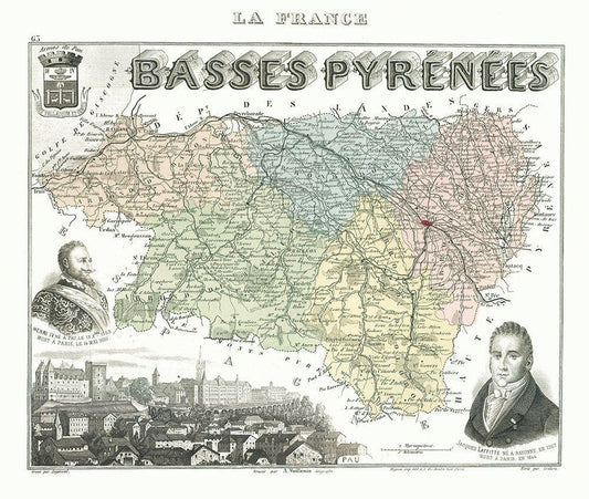 Basses Pyrenees Department France - Migeon 1869 White Modern Wood Framed Art Print with Double Matting by Migeon