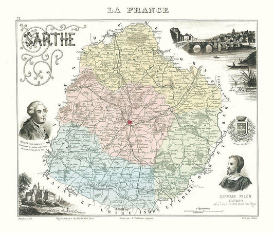 Sarthe Department France - Migeon 1869 White Modern Wood Framed Art Print with Double Matting by Migeon