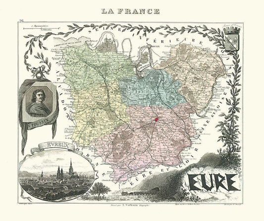 Seine Inferieure Department France - Migeon 1869 White Modern Wood Framed Art Print with Double Matting by Migeon