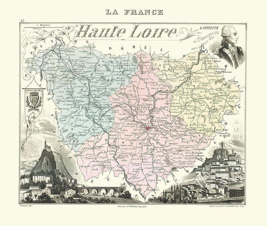 Haute Loire Region France - Migeon 1869 White Modern Wood Framed Art Print with Double Matting by Migeon