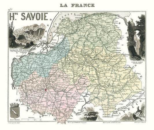 Haute Savoie Department France - Migeon 1869 White Modern Wood Framed Art Print with Double Matting by Migeon