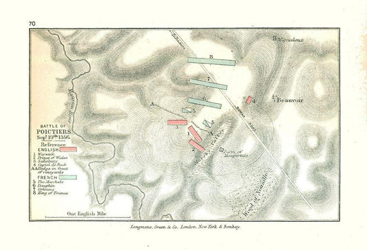 Battle of Poitiers in 1356 France - Gardiner 1902 White Modern Wood Framed Art Print with Double Matting by Gardiner