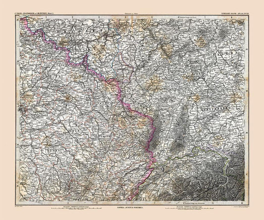 Northeastern France - Stieler 1885 White Modern Wood Framed Art Print with Double Matting by Stieler