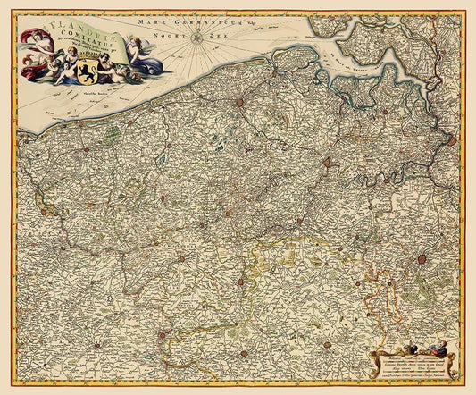Benelux Flanders Belgium - Janssonius 1682 White Modern Wood Framed Art Print with Double Matting by Janssonius