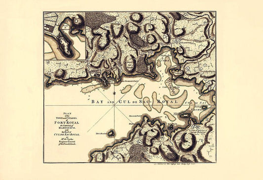 Caribbean Ft Royal with Bay of CulDeSac Martinique White Modern Wood Framed Art Print with Double Matting by Jefferys