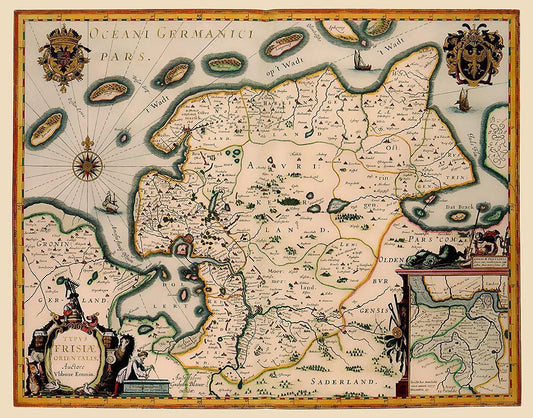 East Friesland Netherlands - Blaeu 1630 White Modern Wood Framed Art Print with Double Matting by Blaeu