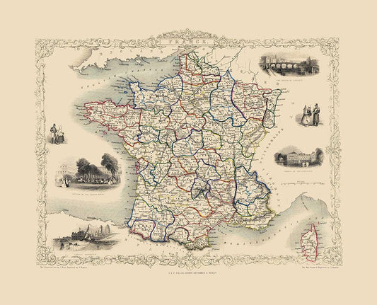 France - Tallis 1851 White Modern Wood Framed Art Print with Double Matting by Tallis