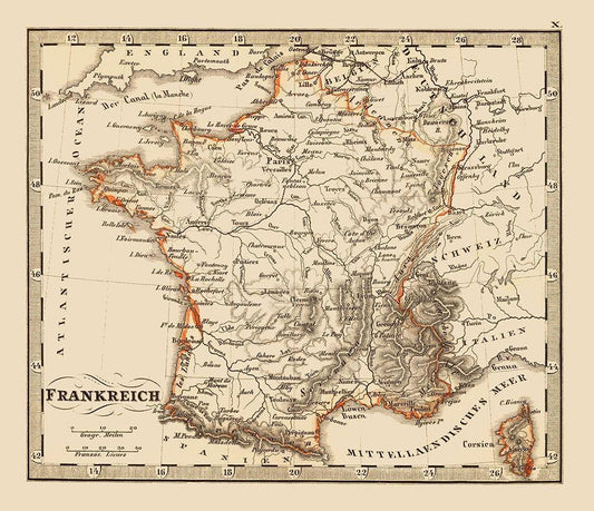 France - Stieler 1852 White Modern Wood Framed Art Print with Double Matting by Stieler