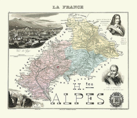 Hautes Alpes Region France - Migeon 1869 White Modern Wood Framed Art Print with Double Matting by Migeon