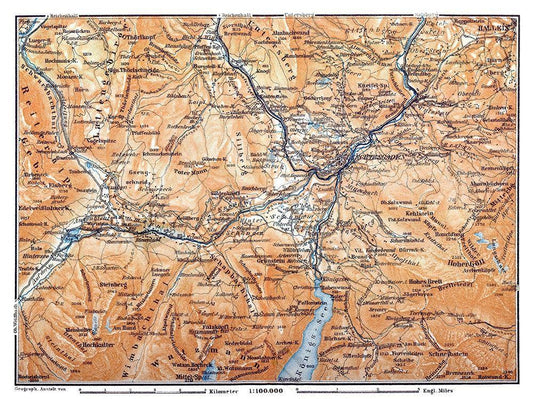 Europe Mountains Germany Austria - Baedeker 1914 White Modern Wood Framed Art Print with Double Matting by Baedeker