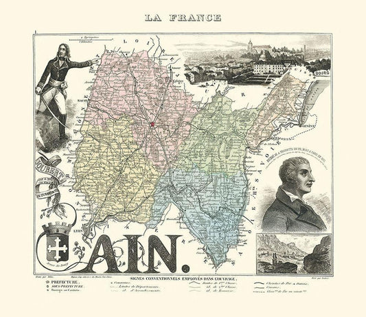 Ain Region France - Migeon 1869 White Modern Wood Framed Art Print with Double Matting by Migeon