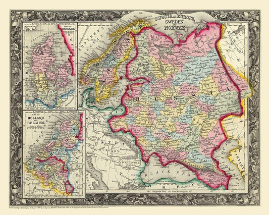 Russia in Europe Sweden Norway - Mitchell 1860 White Modern Wood Framed Art Print with Double Matting by Mitchell