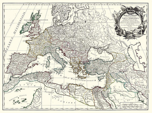 Roman Empire Europe - Vaugondy 1757 White Modern Wood Framed Art Print with Double Matting by Vaugondy