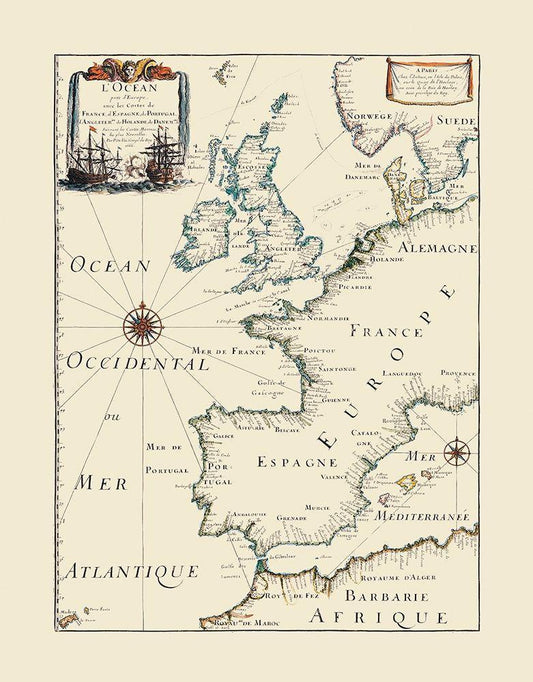 Atlantic Ocean Europe - Roy 1666 White Modern Wood Framed Art Print with Double Matting by Roy