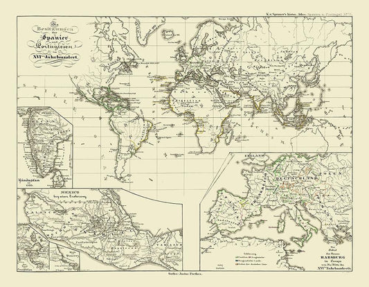 Spain Portugal 16 Century - Perthes White Modern Wood Framed Art Print with Double Matting by Perthes