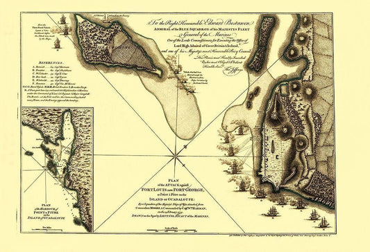 Caribbean Attack Plan Fort Louis Fort George White Modern Wood Framed Art Print with Double Matting by Jefferys