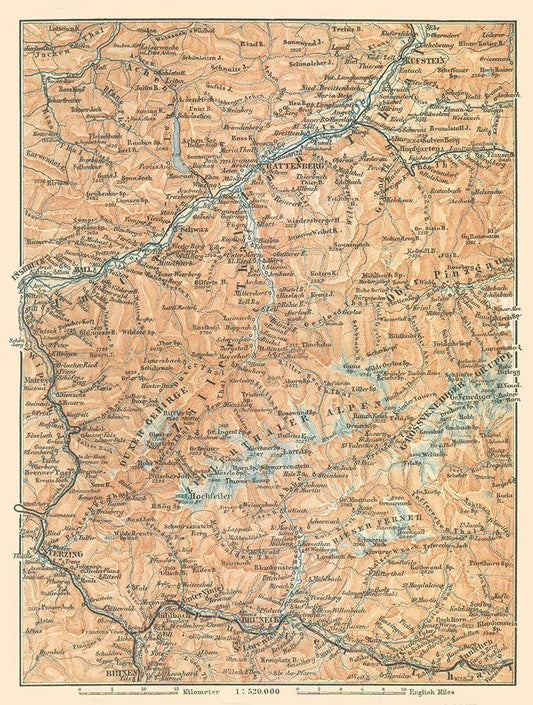Europe Mountains Austria Italy - Baedeker 1896 White Modern Wood Framed Art Print with Double Matting by Baedeker