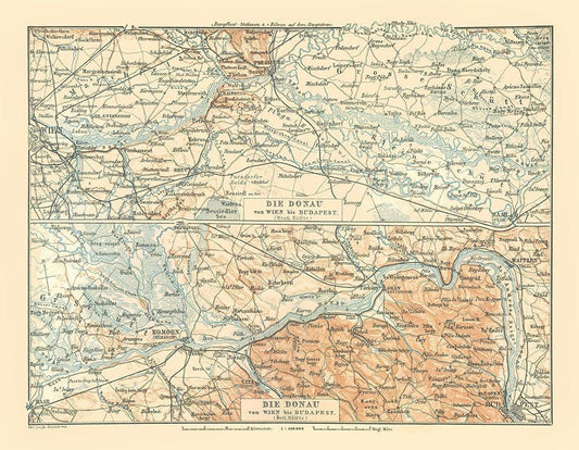 Europe Danube River Austria Hungary - Baedeker White Modern Wood Framed Art Print with Double Matting by Baedeker