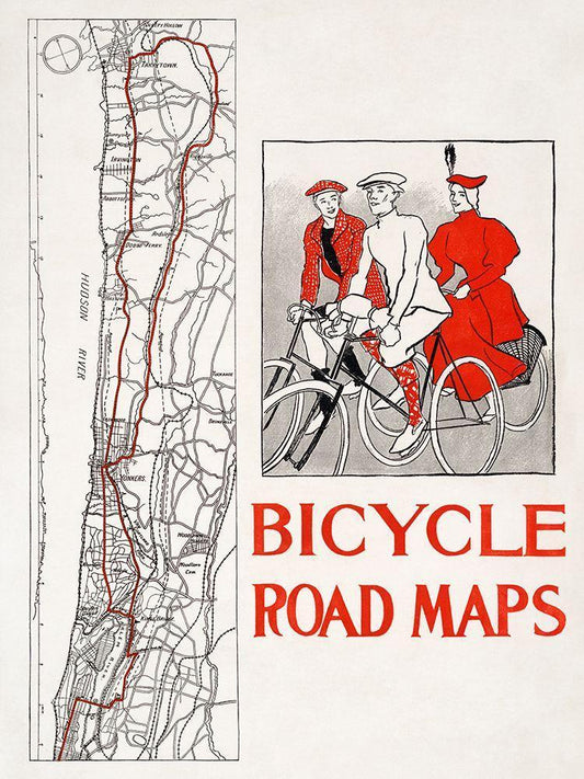 Bicycle road maps White Modern Wood Framed Art Print with Double Matting by Penfield, Edward