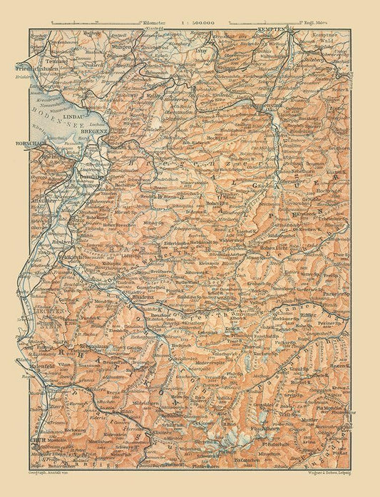 Europe Eastern Switzerland Southwest Austria White Modern Wood Framed Art Print with Double Matting by Baedeker