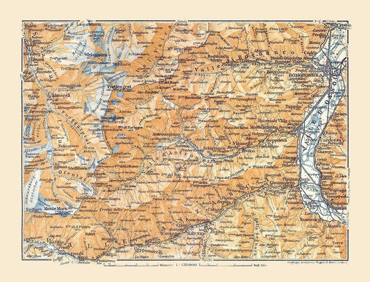 Europe Swiss Italian Val Divedro Switzerland Italy White Modern Wood Framed Art Print with Double Matting by Baedeker