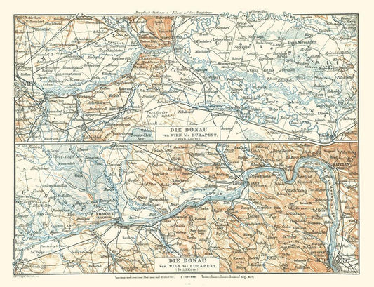 Europe Danube River Vienna to Budapest White Modern Wood Framed Art Print with Double Matting by Baedeker