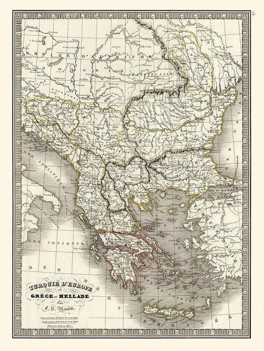 Europe Greece Turkey - Monin 1839 White Modern Wood Framed Art Print with Double Matting by Monin