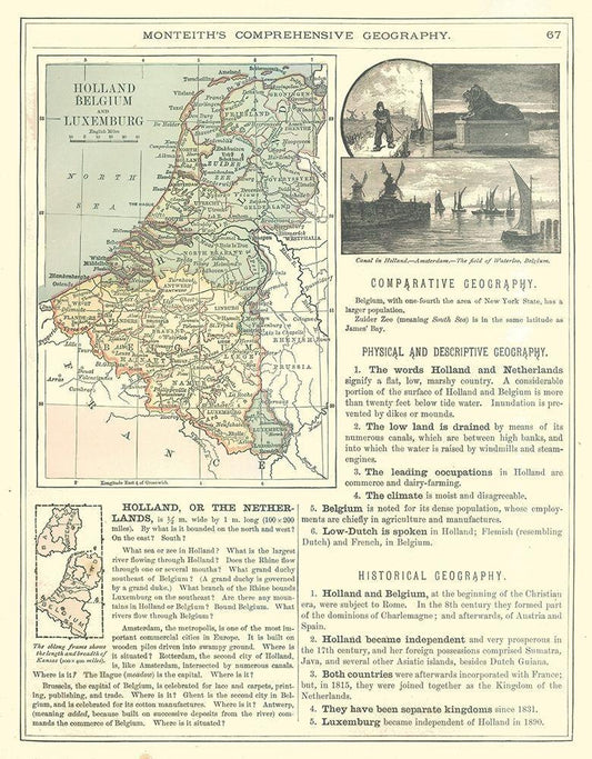Europe Luxemburg Holland Belgium - Monteith 1882 White Modern Wood Framed Art Print with Double Matting by Monteith
