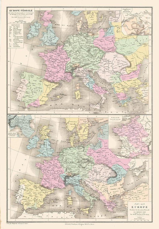 Feudal Europe 1270 to 1453 - Drioux 1882 White Modern Wood Framed Art Print with Double Matting by Drioux