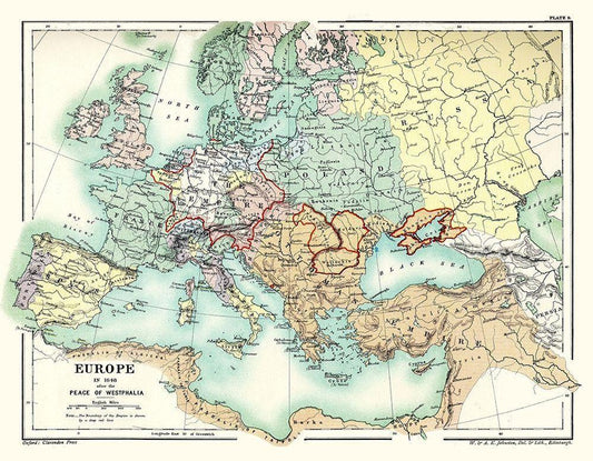 Europe 1648 Peace of Westphalia - Poole 1902 White Modern Wood Framed Art Print with Double Matting by Poole