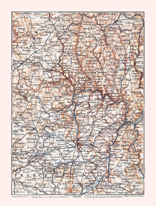 Europe Luxemburg Belgium Germany France White Modern Wood Framed Art Print with Double Matting by Baedeker