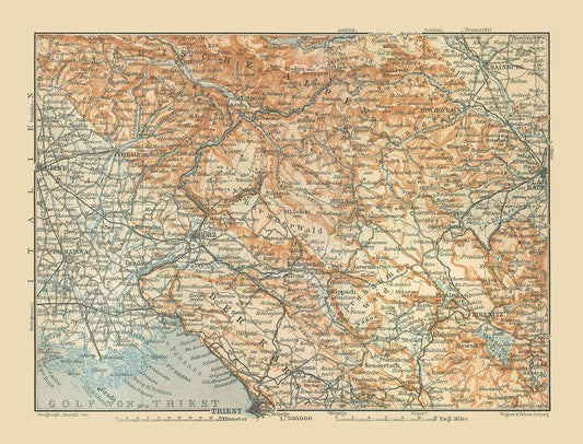 Europe German Empire Austria Hungary - Drioux 1882 White Modern Wood Framed Art Print with Double Matting by Drioux
