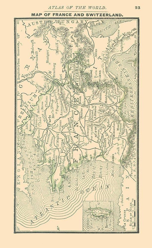 Europe France Switzerland - Alden 1886 White Modern Wood Framed Art Print with Double Matting by Alden