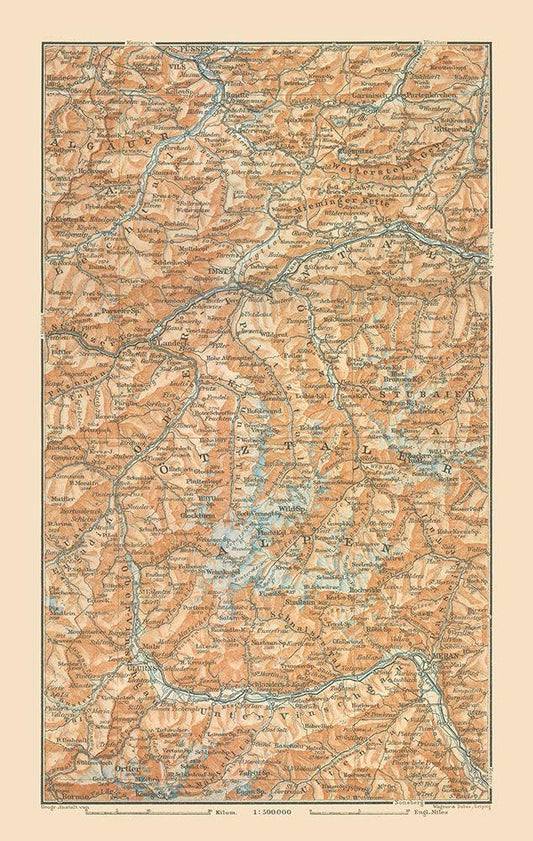 Europe Otztaler Alpen Germany Austria Italy White Modern Wood Framed Art Print with Double Matting by Baedeker