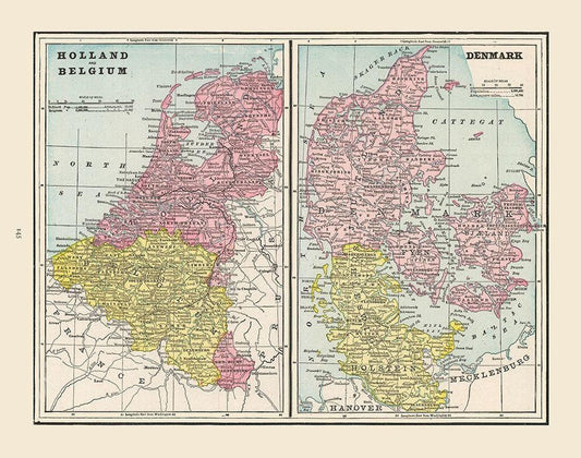 Europe Holland Belgium Denmark - Cram 1892 White Modern Wood Framed Art Print with Double Matting by Cram