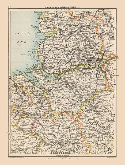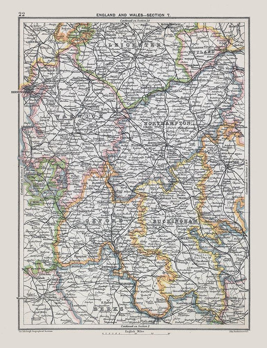 Northwest England - Bartholomew 1892 White Modern Wood Framed Art Print with Double Matting by Bartholomew