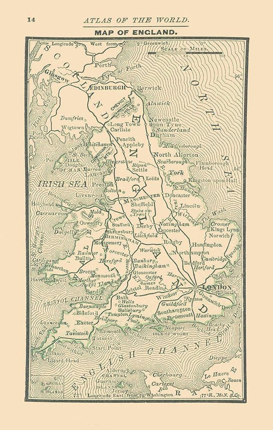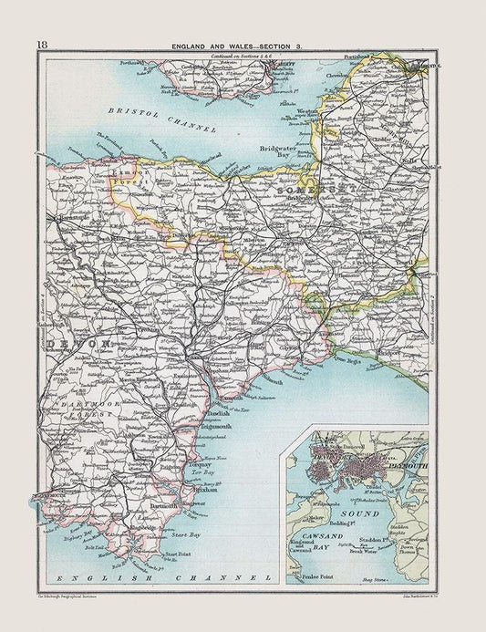 South West England - Bartholomew 1892 White Modern Wood Framed Art Print with Double Matting by Bartholomew
